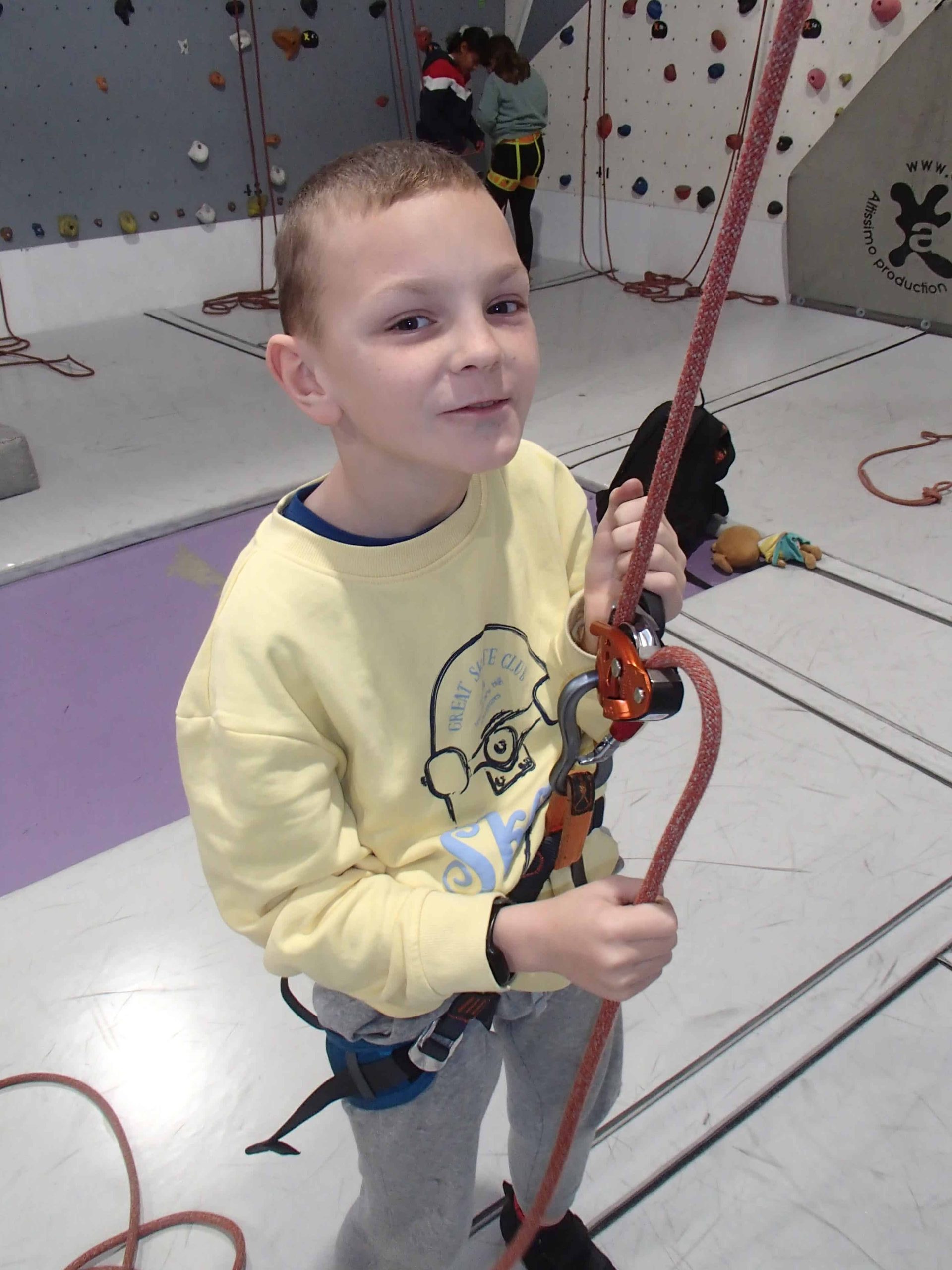 Malgré un froid glacial qui ne donnait pas envie de s’attarder en extérieur, les petits grimpeurs ont une nouvelle fois opté pour une séance au chaud. Direction la salle Altissimo, devenue notre refuge hivernal préféré !