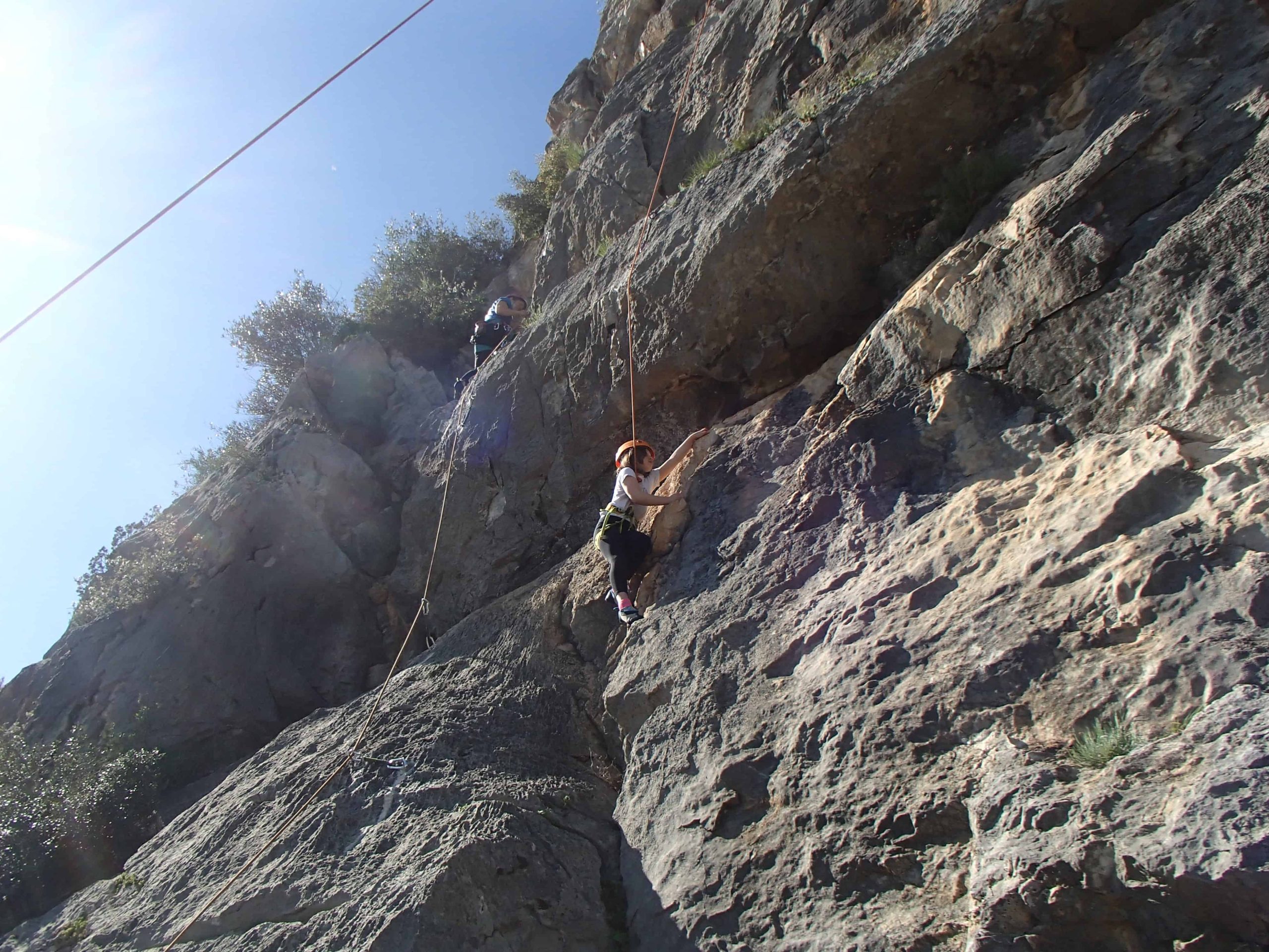 Après une veille passée bien au chaud, changement total d’ambiance ce dimanche : le soleil est enfin de retour ! Direction les falaises, avec un petit coin choisi à l’abri du vent du Bousquet, histoire de profiter au maximum de cette belle journée.