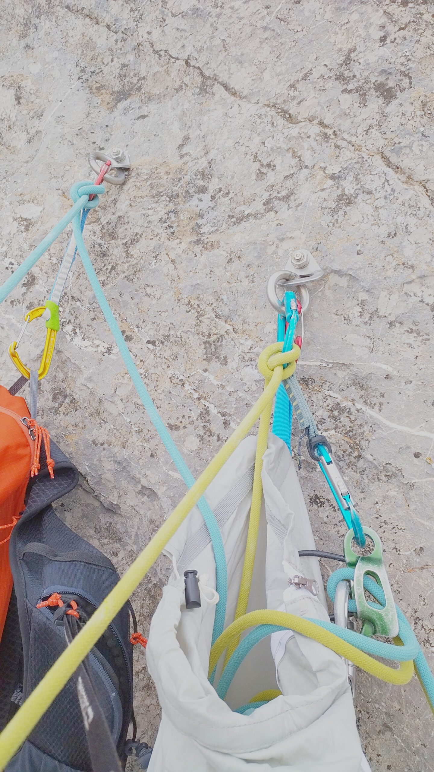 Petite virée sur la Bouffonne où on a profité de poser aux relais des plaquettes couplées à des anneaux permettant ains la descente en rappel.