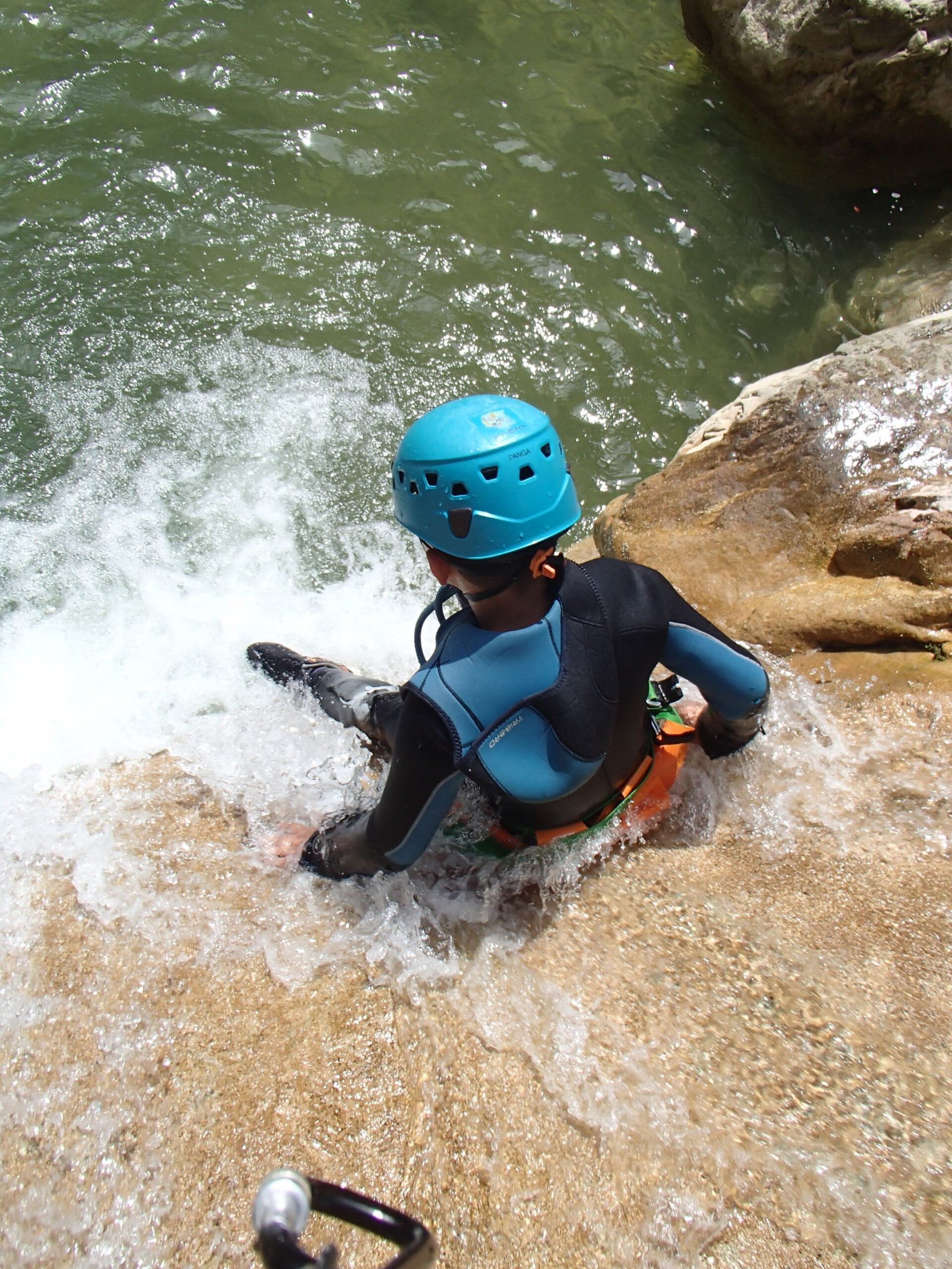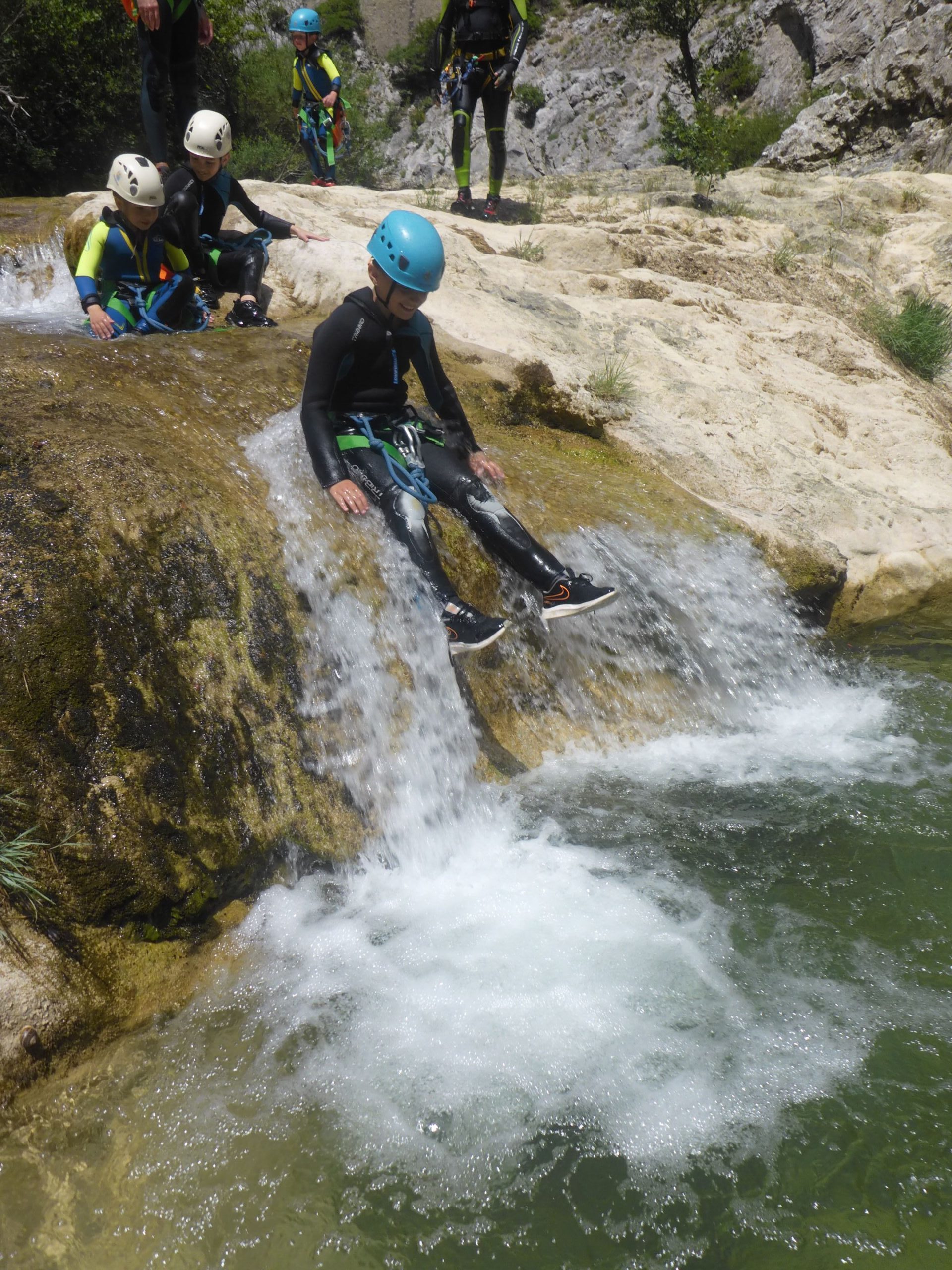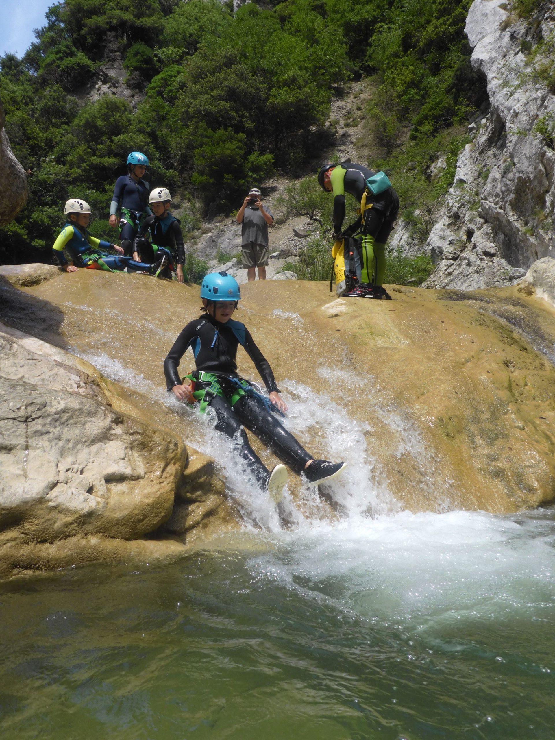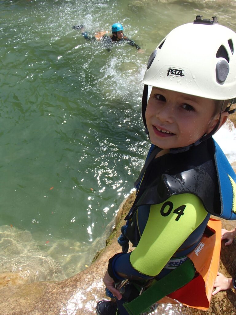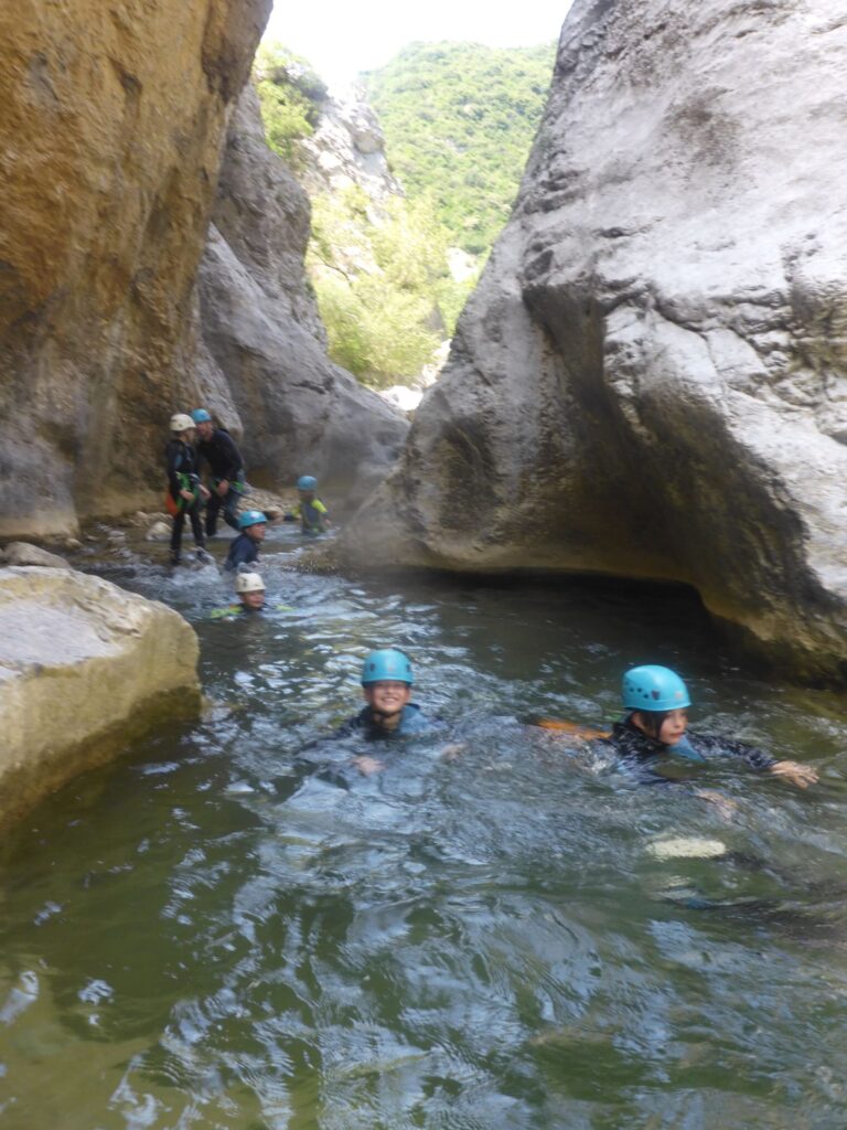 Il faut savoir nager et avoir de l’endurance. Ce parcours ludique avec marches d’approche et de retour, sauts, nages, désescalades, marches exige une certaine dépense d’énergie durant ces deux heures d’efforts. Cette descente s’effectue dans l’eau froide, moments rafraichissants ces temps de fortes chaleurs. Les petits canyonneurs ont adoré.