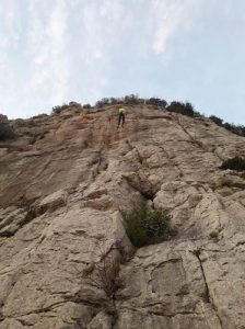 J’avais participé à l’équipement initial de ce secteur. Ces deux voies ont vu le jour en juin 1995 lors d’un stage d’initiateur escalade encadré par Pierre Taule et Fred Pascal. Ce secteur se nommait alors le secteur interdit. Le temps passant, d’autres vagues d’équipement sont passées par là. Le secteur prit alors le doux nom de Gratounette du nom de la voie éponyme. Après quasiment 25 ans d’utilisation, les anneaux de descente sont usés entre le tiers et la moitié de l’épaisseur.
