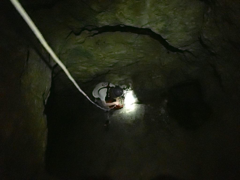 Pendant que la miss s’applique à ses recherches minérales, on en profite pour faire un aller-retour express aux étages -3 et -4 : 35 minutes chrono. La remontée s’annonce longue. Je laisse Noah et Arthur, qui ont désormais suffisamment d’expérience. Consigne claire : prendre le temps d’explorer les galeries labyrinthiques, ne pas se mettre en danger, et déséquiper proprement.